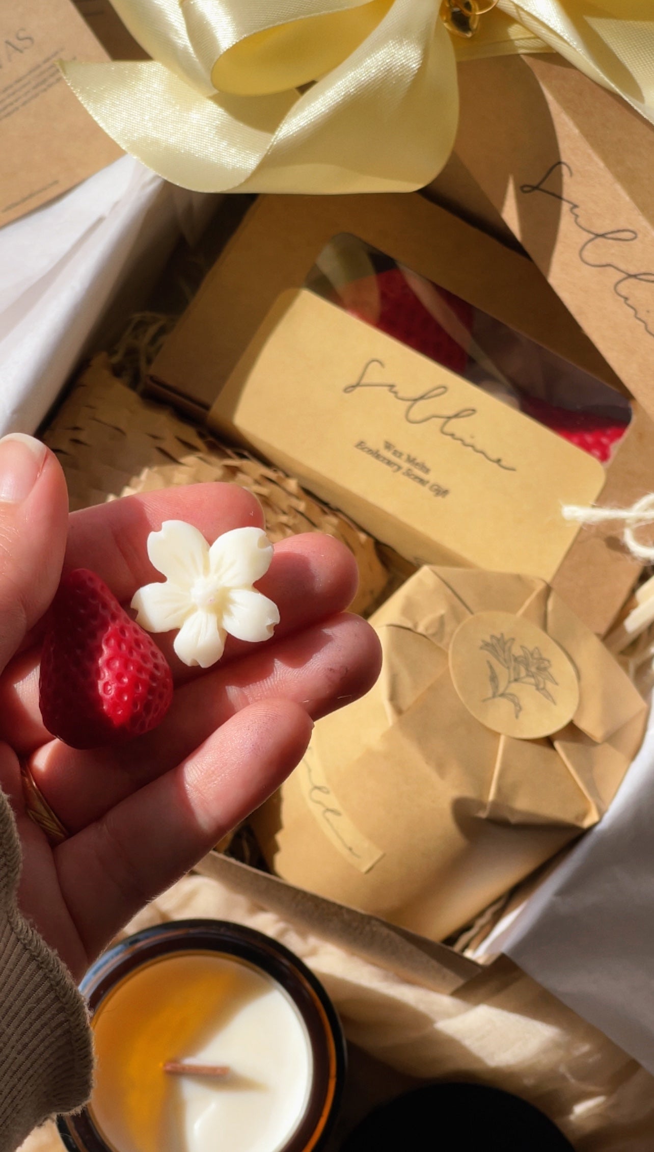 Cada coffret é um ritual em si — embrulhado numa caixa artesanal personalizada, com a frase que nos guia: “porque presentear sempre será uma forma de se fazer presente”.