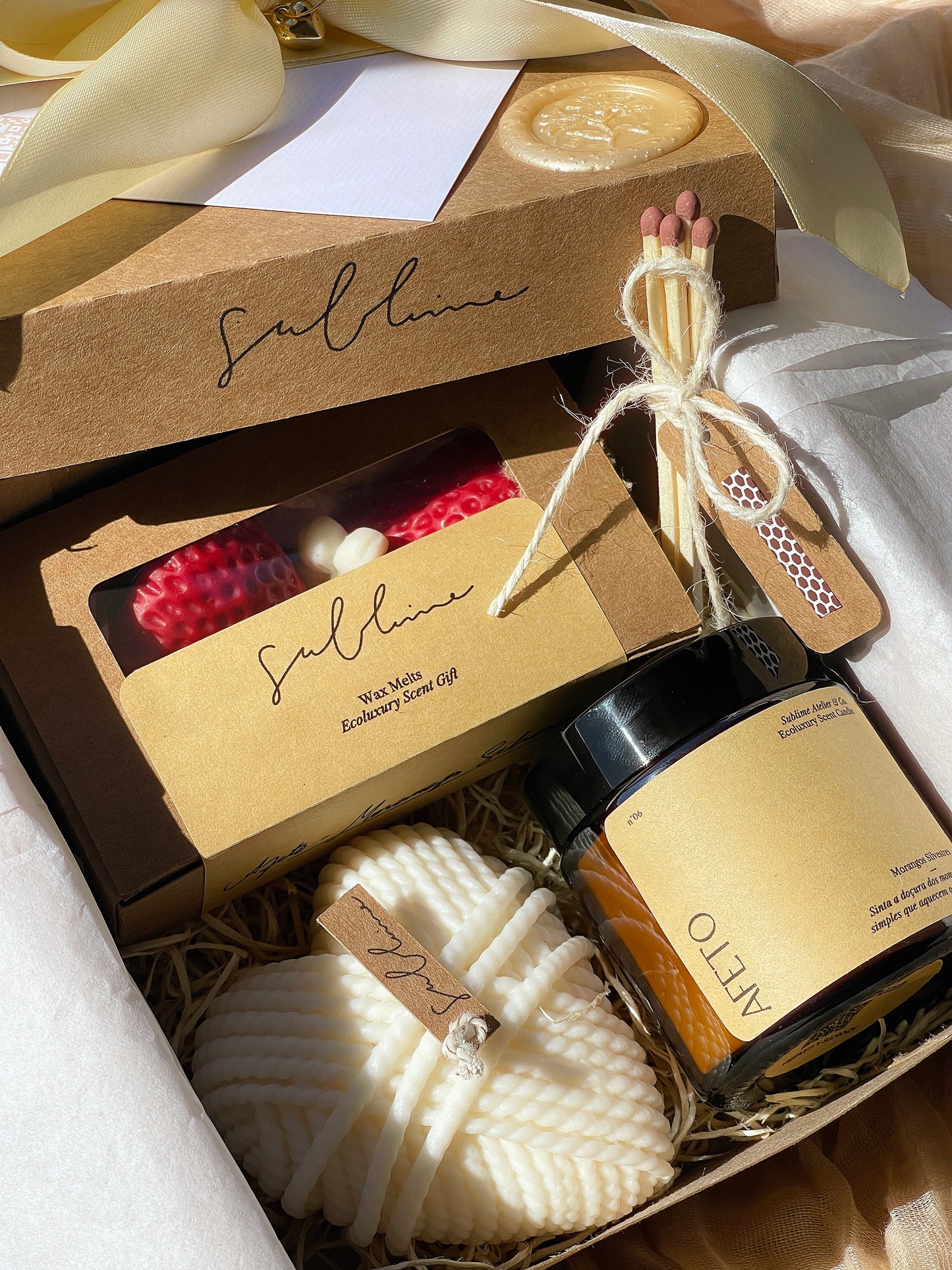Coffret Best Sellers - Wax Melts, Vela Perfumada e Vela Decorativa Coração de Lã