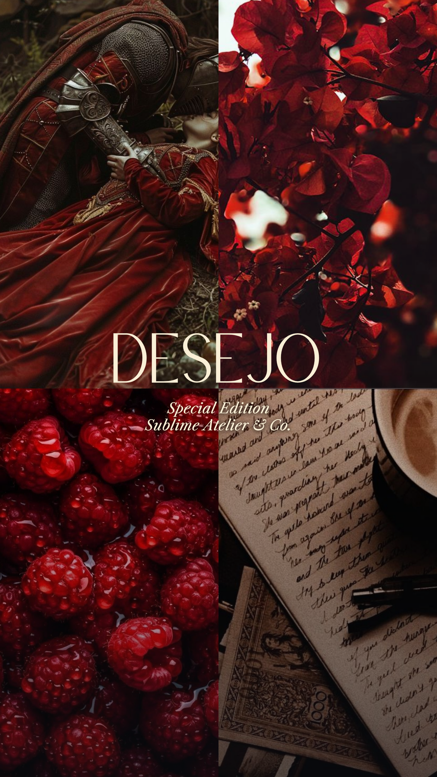Esta fragrância desperta memórias de um amor antigo, onde cada encontro é um risco, cada carta, uma jura secreta, e cada toque, a doce rendição ao inevitável. Notas de flores delicadas e frutos adocicados entrelaçam-se em uma dança de paixão, deixando no ar um rastro inebriante de desejo e entrega.