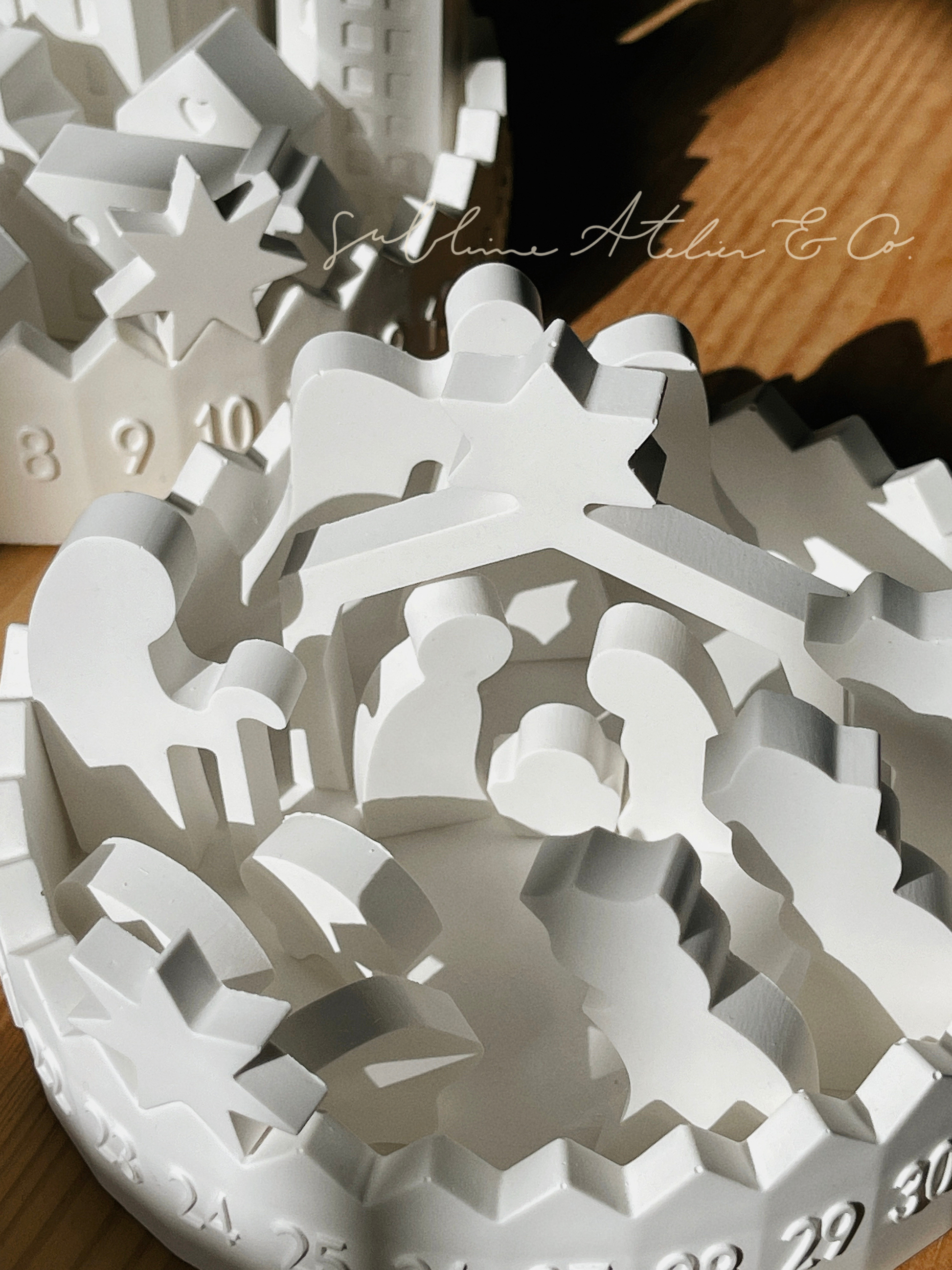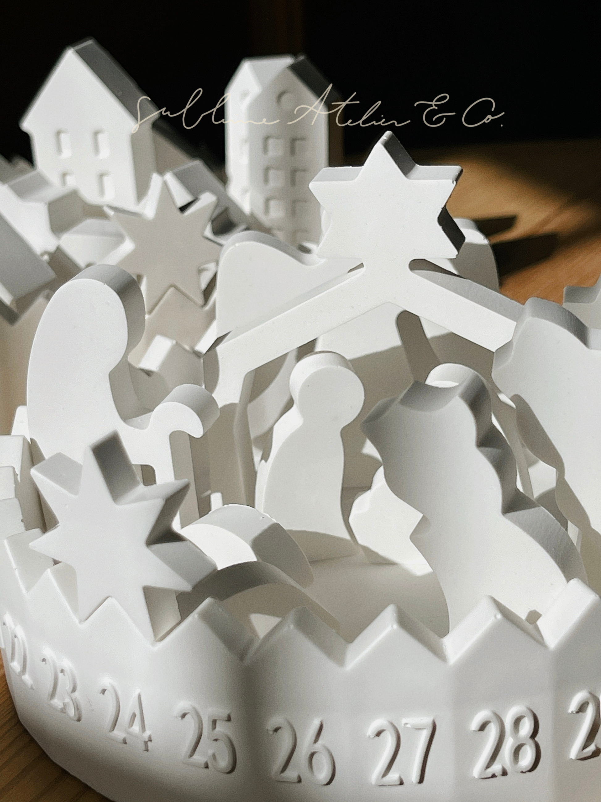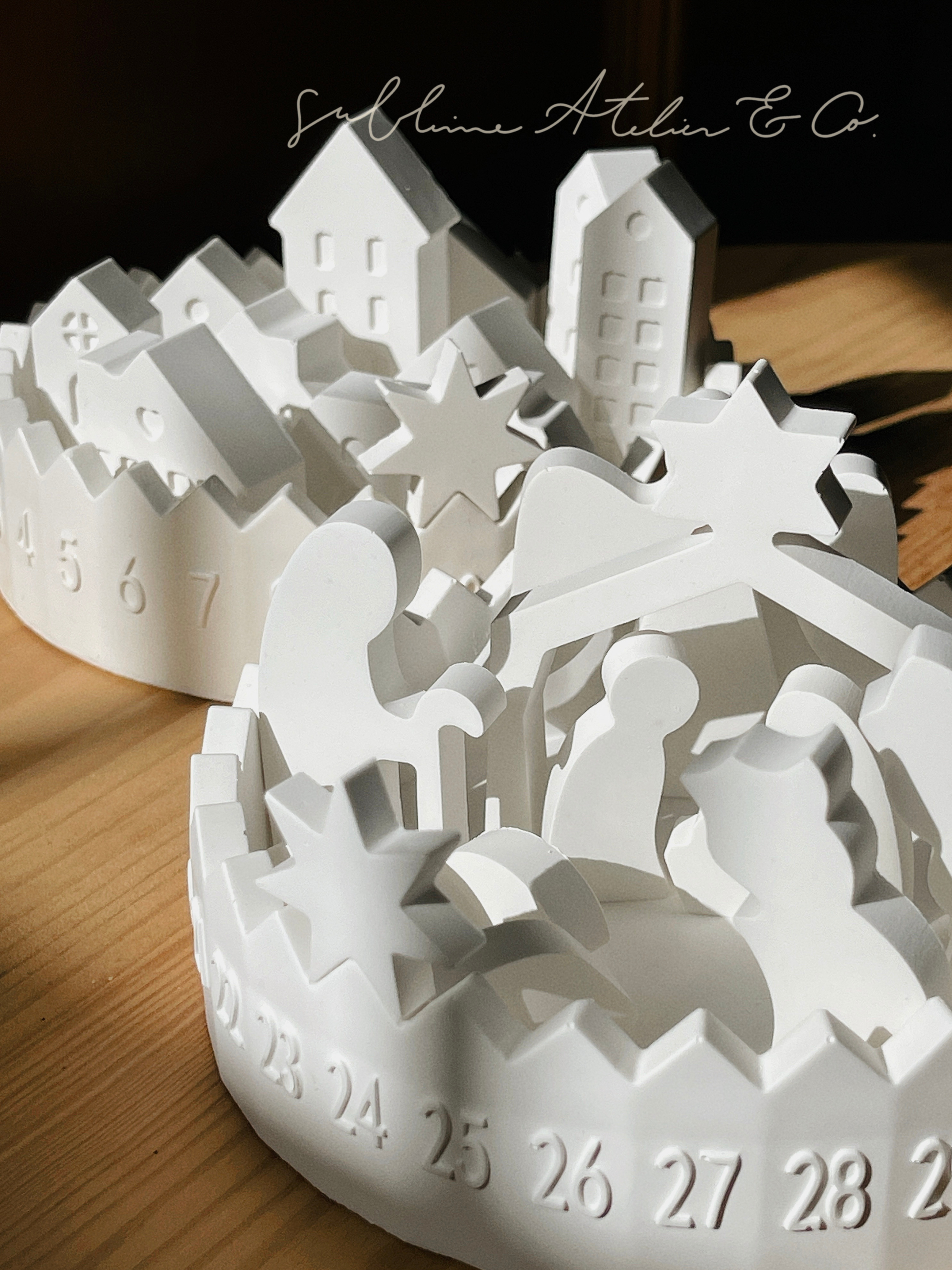 Presépio de Natal com Calendário do Advento ou Vilarejo de Natal