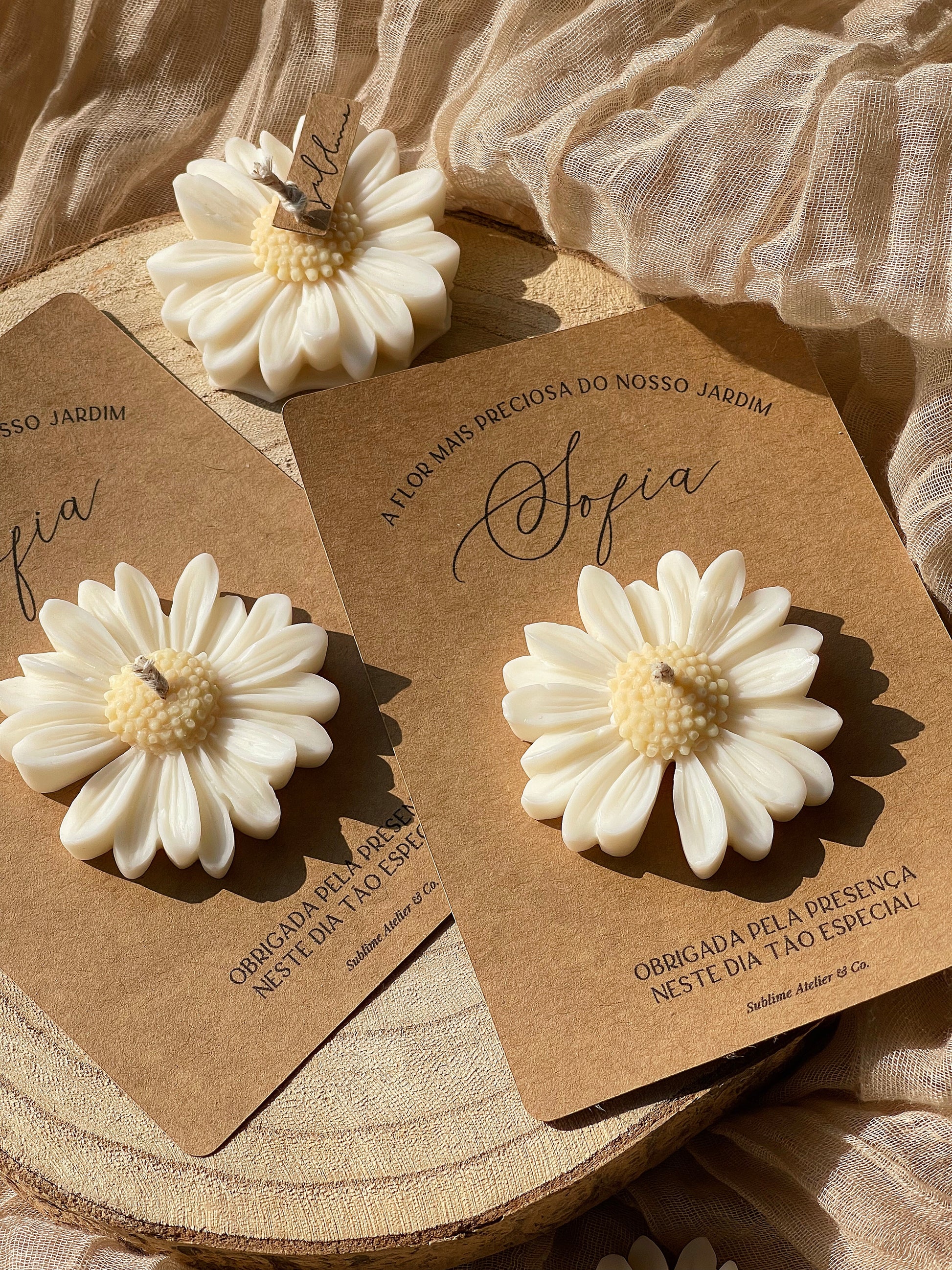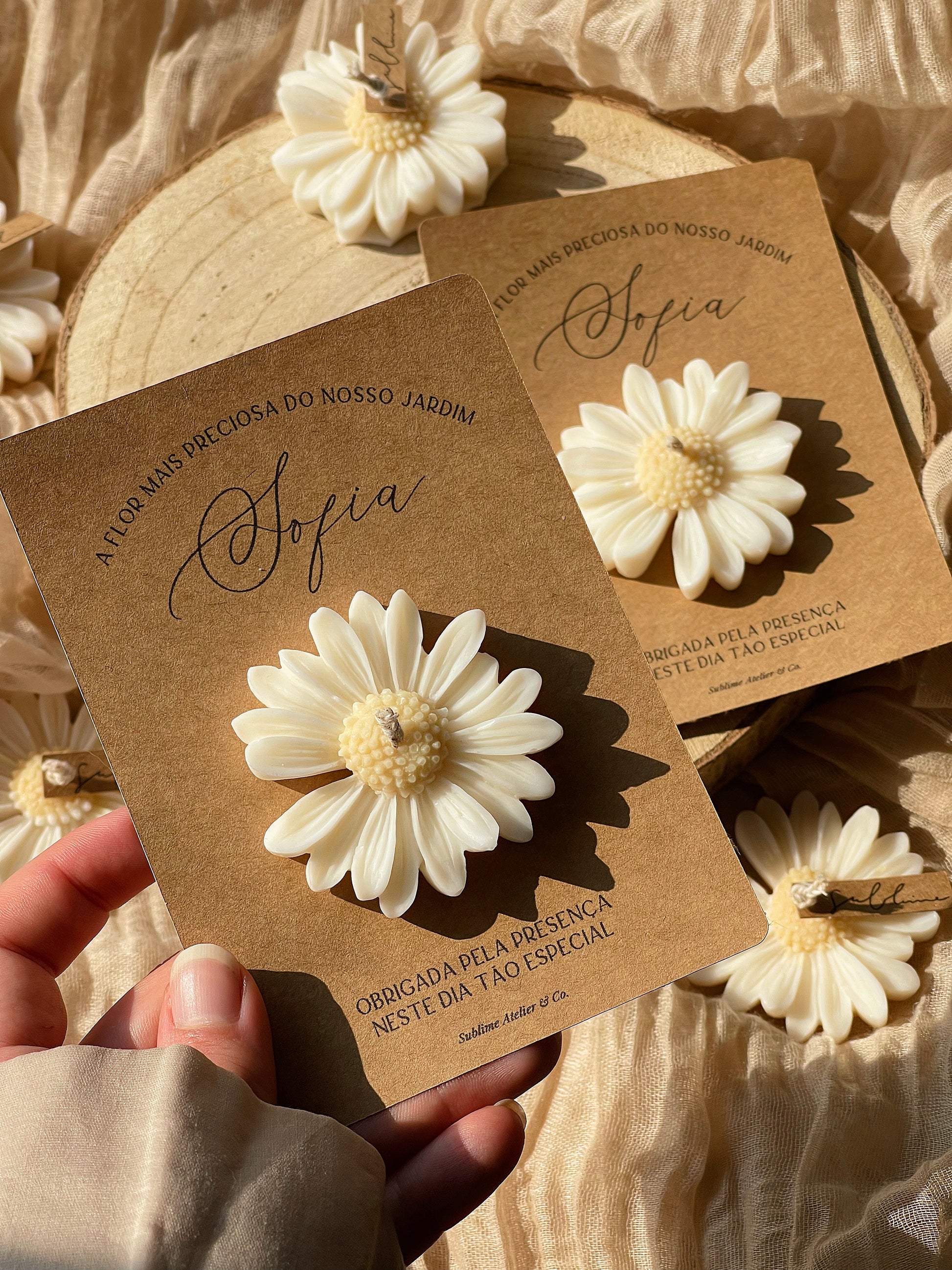 Nem toda flor nasce num jardim. Algumas nascem do gesto de quem quer permanecer. Esta vela margarida é moldada à mão, com cera vegetal e intenção — um símbolo delicado que toca sem precisar dizer muito. Acompanha um cartão personalizado com nome, data e palavras que importam.